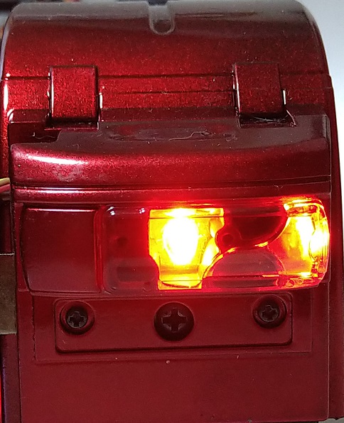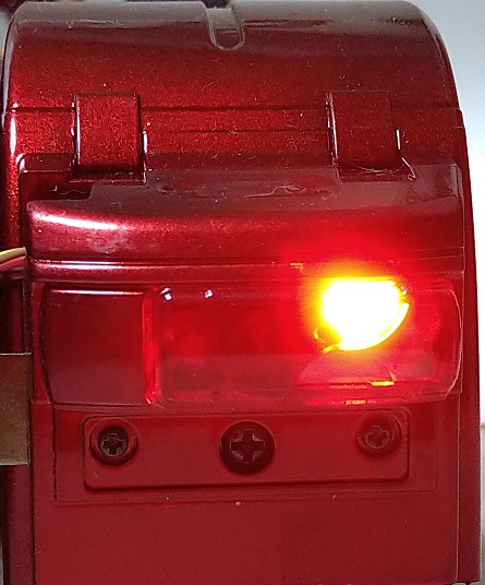 ストップランプはバックランプの上にある半円状?の部分になります。制限抵抗を調整して、明るく光るように調整しています。